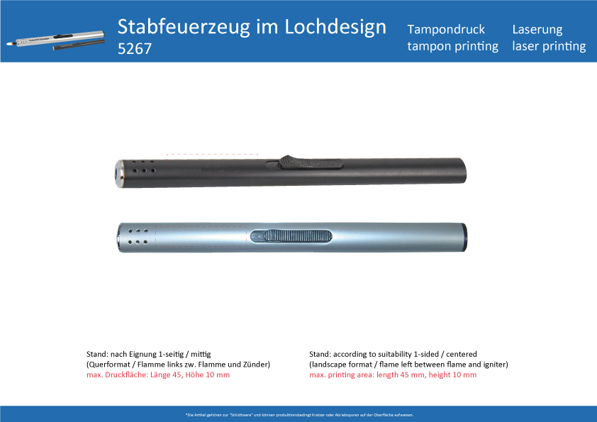 Stabfeuerzeug "AMY" im Lochdesign aus Aluminium. Nachfüllbar mit Flammenregulierung. (Format: 175 x 15 mm)