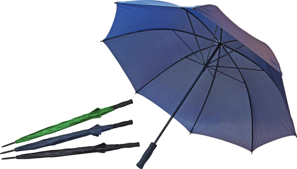 Portierschirm "MIZZLE" mit schwarzem Softgriff und schwarzem Metallstock. Schließband mit Klettverschluss. Bespannung: Nylon. Verpackungseinheit: 36 Stck. (Durchmesser: ca. 125 cm)