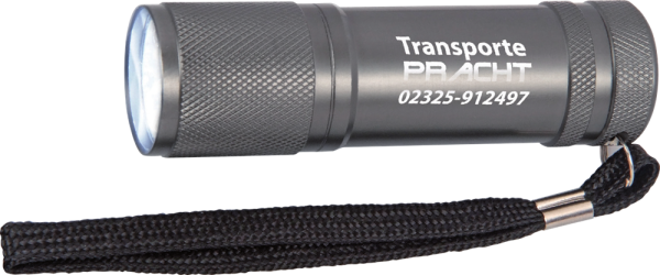 LED-Taschenlampe „MEX“ mit 9 Stck. LED-Leuchten und Handschlaufe. Hergestellt aus leichtem Aluminium, inkl. Batterien. Lieferung erfolgt in einer Geschenkbox. Ihre Werbeanbringung wird durch eine hochwertige Laserung dauerhaft angebracht. (Fomat: 90 x 28) - Aufgrund der Batterieverordnung müssen wir eine Entsorgungspauschale berechnen. -