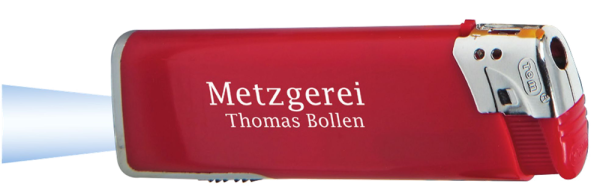 Elektronisches Multifunktionsfeuerzeug „NOSTRA“ mit LED-Taschenleuchte. Der Lichtschein ist bei allen Lampen weiß. Nachfüllbar mit Flammenregulierung. (Format: 80 x 24 mm) - Aufgrund der Batterieverordnung müssen wir eine Entsorgungspauschale berechnen. -