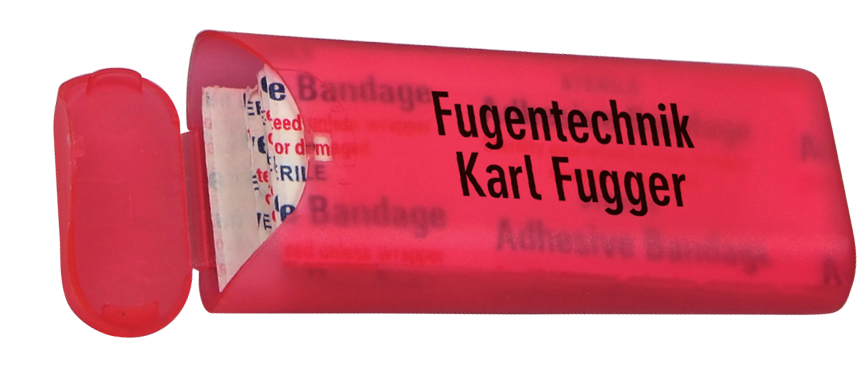 Pflasterbox "EASY" - Kunststoffbox mit 10 Stck. versiegelten Pflastern bestückt. (Format der Box: 80 x 34 mm) - Bedruckbar nur in den Farben SCHWARZ, WEISS und SILBER