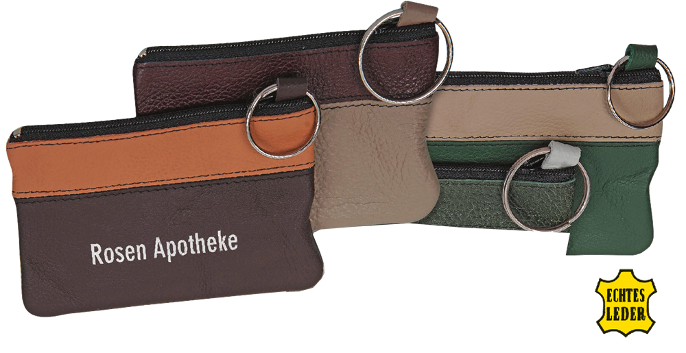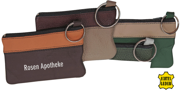 Schlüsseltasche „NURO“ aus ECHTEM LEDER mit farblich sortierten Randstreifen, nur farblich sortiert lieferbar. (Format: 110 x 75 mm)