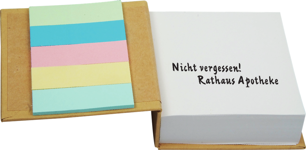 Memosticker - Block "TELSOX" mit 5 verschiedenen Klebenotizblöckchen bestückt mit 250 Blättern. Farbe: Natur (Format: 80 x 80 mm)