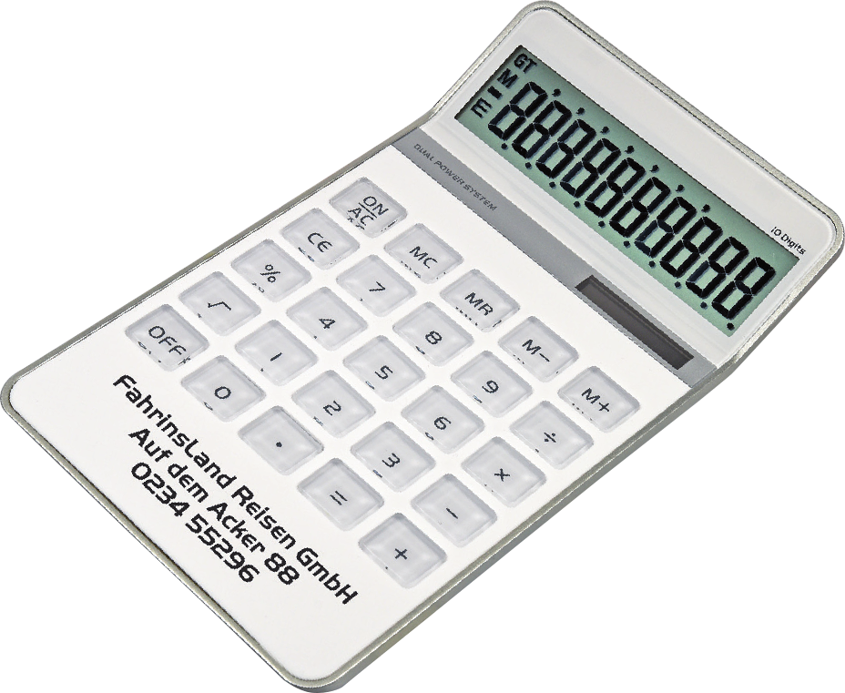 Dual-Power-Rechner „ALEGRO“ Elegantes Design mit Acryloberfläche. Antirutschgummierung auf der Unterfläche. 10-stelliges Display mit allen gängigen Rechenfuntionen. Inklusive Batterien. (Format: 185 x 106 x 10 mm) - Aufgrund der Batterieverordnung müssen wir eine Entsorgungspauschale berechnen. -