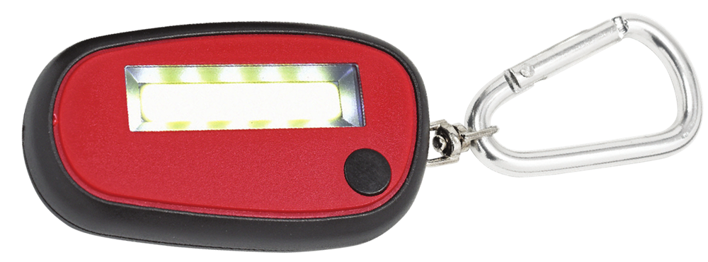 Schlüsselanhänger "FLASH" mit Taschenlampe/Taschenleuchte und Karabiner. Drei verschiedene Leuchtstufen die individuell geschaltet werden können. Durchgehend hell, gedimmt oder blinkend. (Format: 58 x 32 x 12 mm) - Aufgrund der Batterieverordnung müssen wir eine Entsorgungspauschale berechnen. -