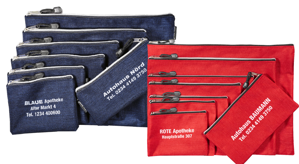 Organizer-Taschen "CELESTIA" in diversen Größen mit Zipper und silberfarbenem Reißverschluss. INKLUSIVE 1-FARBIGEM Werbeaufdruck. Nutzbar als Geldbörse - Schlampermäppchen - Reisedokumententasche - Wagenpapiertasche u. vieles mehr. Lieferbar in blau u. rot. (Format: 13,5 x 10 cm) Lieferzeit ca. 5-6 Wochen nach Korrekturfreigabe. Diese Preise sind Richtwerte. Aufgrund der ständigen Währungsschwankungen können wir keine Festpreise anbieten. Bitte fragen Sie gezielt nach den aktuellen Tagespreisen.