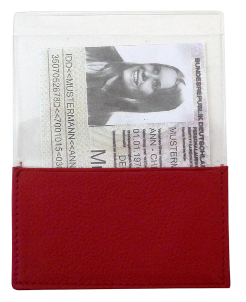 Kfz.-Scheinhülle "OPTIMUS" aus transparenter Folie Der Teil der Werbefläche ist aus Echtem Leder hergestellt und sorgt für ein gutes Feeling. (Format: 90 x 115 mm) - Durch Preiserhöhungen des Herstellers mussten wir die Artikelpreise anheben.