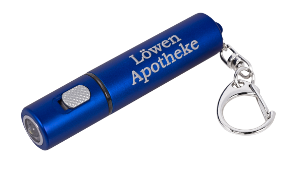 Taschenleuchte "TOFINO" mit Leuchteffekt für Ihren Werbetext ! Durch das Lasern entsteht ein Leuchteffekt, der Ihre Werbebotschaft in verschieden farbenem Licht erscheinen lässt. (Format: 70 x 15 mm, enthält Einwegbatterien) - Aufgrund der Batterieverordnung müssen wir eine Entsorgungspauschale berechnen. -
