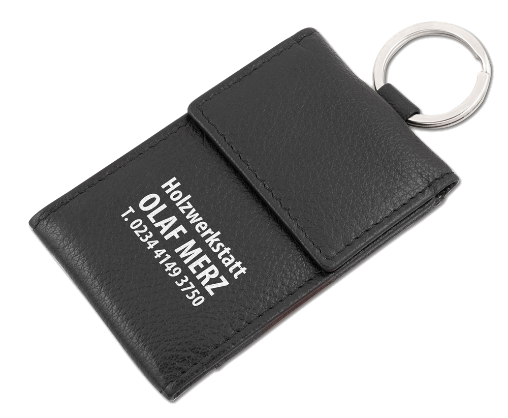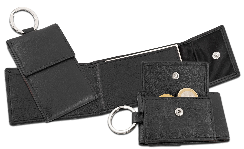 Mini-Geldbörse aus Echtem Leder mit Schlüsselanhänger, Papier- und Kleingeldfach. (Format: 80 x 55 mm ohne Ring)