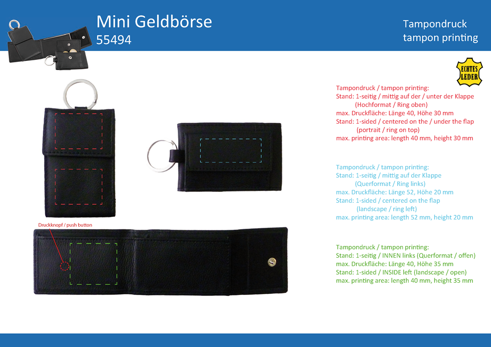 Mini-Geldbörse aus Echtem Leder mit Schlüsselanhänger, Papier- und Kleingeldfach. (Format: 80 x... mehr