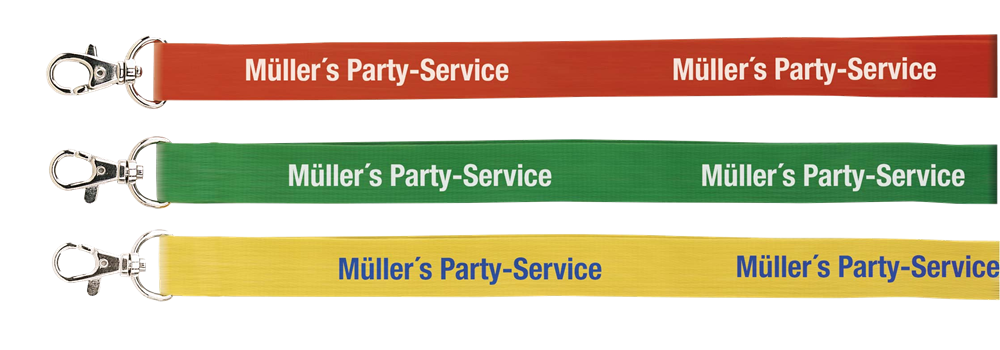 Polyester-Lanyard "NECK" mit Karabinerhaken inkl. 1-4 farbigem Sublimationsdruck (Format: 900 x 20 mm), Einfärbungen in Pantone Farben sind ab 500 Stück möglich gegen einen Aufpreis von 29,00 €. Lieferzeit: 5-6 Wochen nach Korrekturfreigabe.