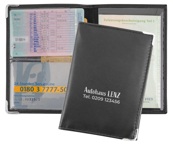 Ausweistasche "ODIN" aus PU-Material und 2 Silberecken. (Format ca. 80 x 115 mm) mehr