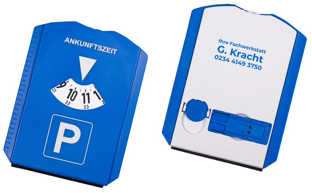 Parkscheibe "REX" mit Eiskratzer und Gummilippe.