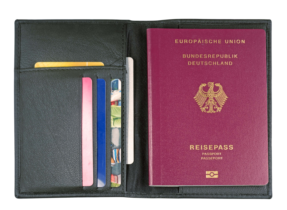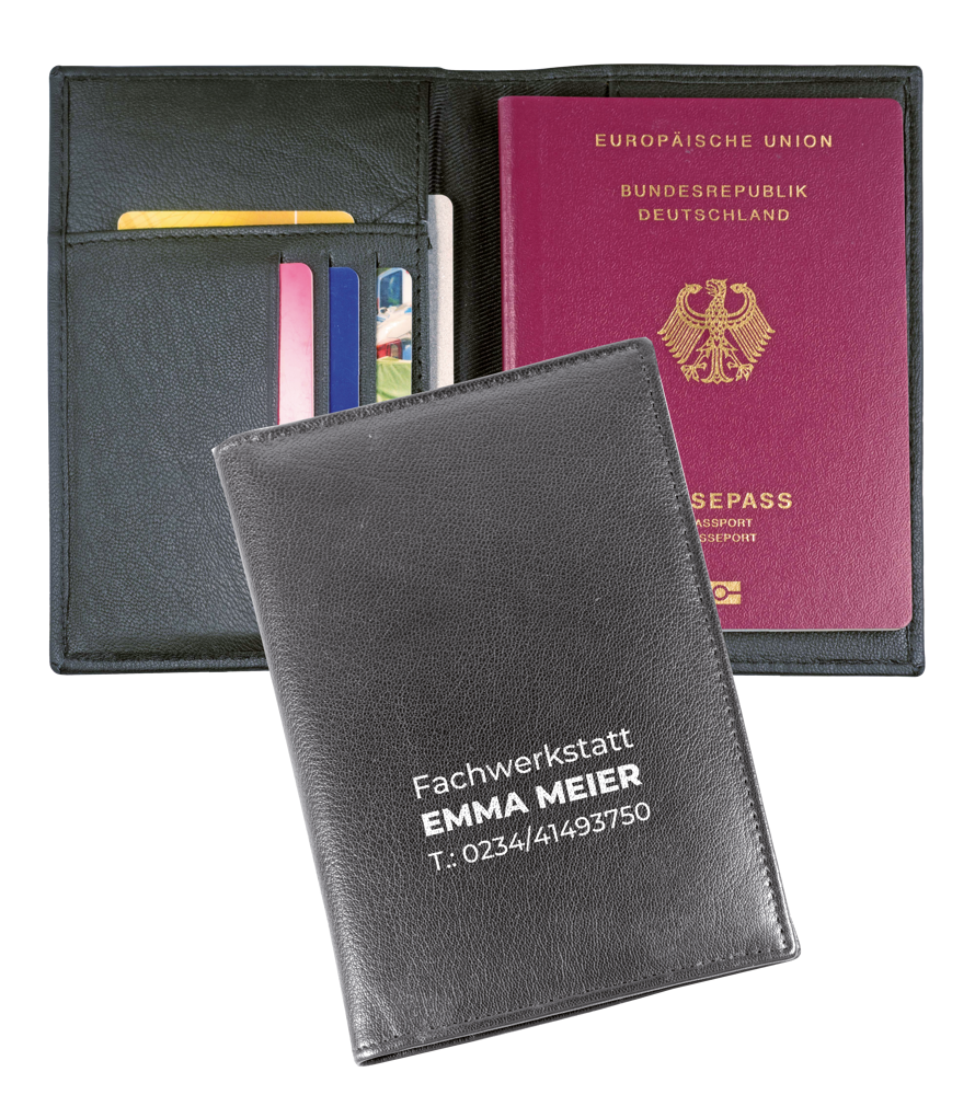 Leder Ausweistasche "ORLANDO" aus echte, Leder passend für den Reisepass. 3 Stück Kreditkartenfächer, 2 Stück Fächer für weitere Papiere. Top Qualität in sehr guter Verarbeitung. (Format: 95 x 145 mm)