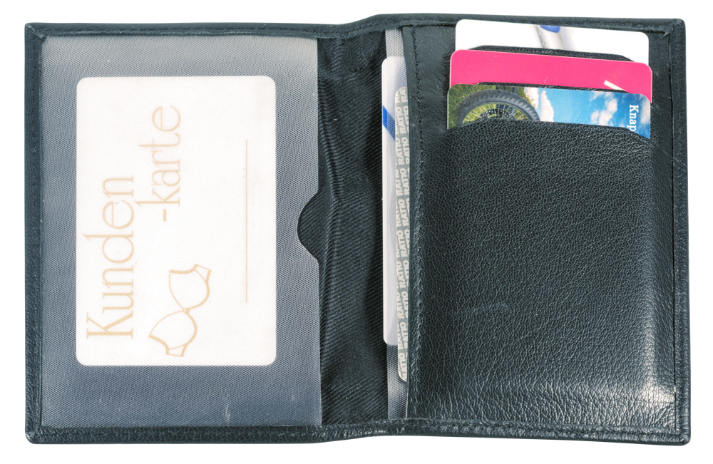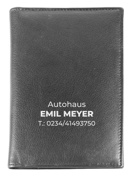 Leder Ausweistasche "ESTORIL" aus echtem Leder. Einheitliches Leder, eingeschlagene Kanten. 3 Kreditkartenfächer, 3 Fächer für Führerschein und Kfz.-Schein, usw. (Format: 85 x 125 mm)