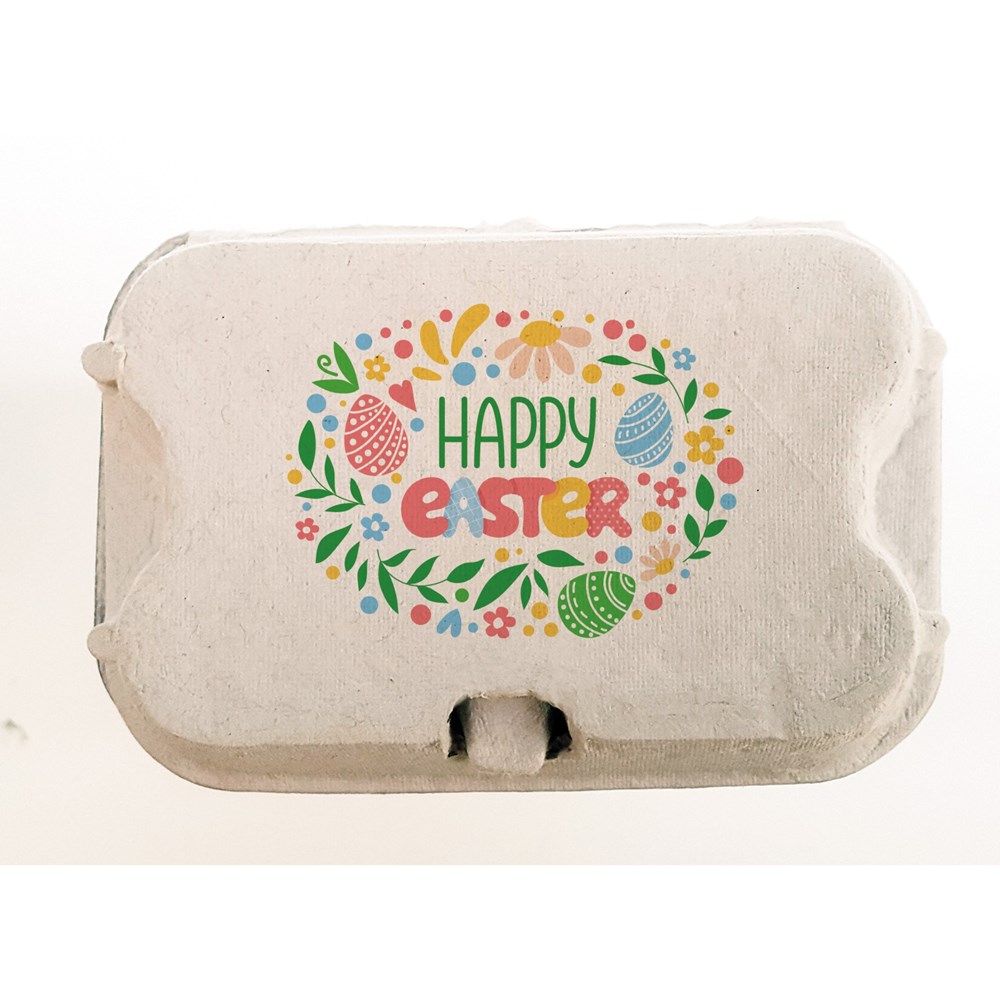 6 feinste SCHOKOEier in cooler Verpackung, je 6,3 g, bunt sortiert. • Leckere Schoko-Hohl-Eier verpackt in einer 6er Box, die mit einem Druck 1c oder mit einem Etikett 4c individuell gestaltet werden kann.