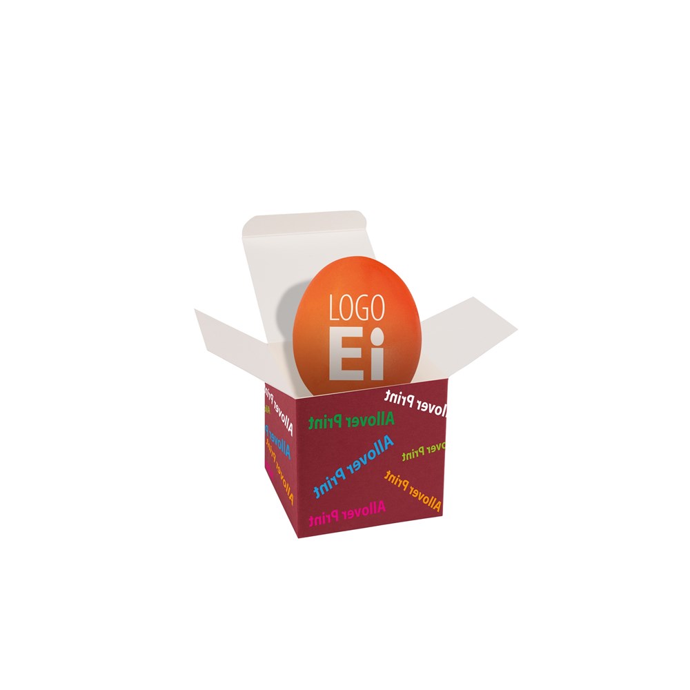 1 ColorBox (Farbe nach Wahl) gefüllt mit 1 Qualitäts-Ei Farbe Orange inkl. LogoEi Druck 1c. • Wir verwenden nur ausgesuchte Eier der Güteklasse A, KAT-zertifiziert (Verein für kontrollierte alternative Tierhaltungsformen e.V.). Die exakt kontrollierte Kochdauer und der erstklassige Geschmack sorgen für ein originelles, persönliches und wertvolles Geschenk mit einer Haltbarkeit von ca. 4 Wochen. Quadratisch, flexibel und nachhaltig: die ColorBox ist ein Naturprodukt "MADE IN GERMANY" welches aus 100% Recyclingpapier hergestellt wird und in 13 leuchtenden Farben erhältlich ist. Die ColorBox kann auf Wunsch mit einem 1c Druck individualisiert werden. Weitere mögliche Werbeanbringungen sind eine Banderole 4c um die Box herum, ein Etikett/Aufkleber 4c und ab 3000 Stück ein All-Over Druck 4c. Im Preis enthalten ist bereits der individuelle 1c Druck auf dem Ei, pro Motiv werden einmalig Vorkosten berechnet.