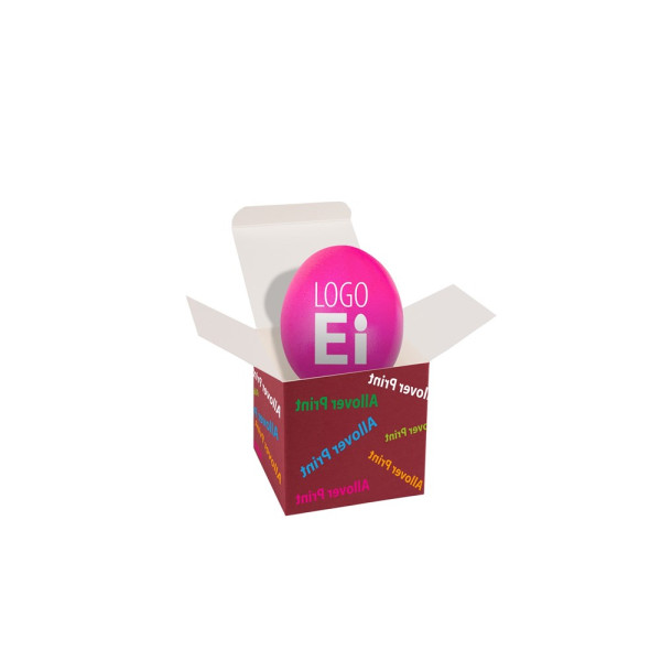 1 ColorBox (Farbe nach Wahl) gefüllt mit 1 Qualitäts-Ei Farbe Pink inkl. LogoEi Druck 1c. • Wir verwenden nur ausgesuchte Eier der Güteklasse A, KAT-zertifiziert (Verein für kontrollierte alternative Tierhaltungsformen e.V.). Die exakt kontrollierte Kochdauer und der erstklassige Geschmack sorgen für ein originelles, persönliches und wertvolles Geschenk mit einer Haltbarkeit von ca. 4 Wochen. Quadratisch, flexibel und nachhaltig: die ColorBox ist ein Naturprodukt "MADE IN GERMANY" welches aus 100% Recyclingpapier hergestellt wird und in 13 leuchtenden Farben erhältlich ist. Die ColorBox kann auf Wunsch mit einem 1c Druck individualisiert werden. Weitere mögliche Werbeanbringungen sind eine Banderole 4c um die Box herum, ein Etikett/Aufkleber 4c und ab 3000 Stück ein All-Over Druck 4c. Im Preis enthalten ist bereits der individuelle 1c Druck auf dem Ei, pro Motiv werden einmalig Vorkosten berechnet.