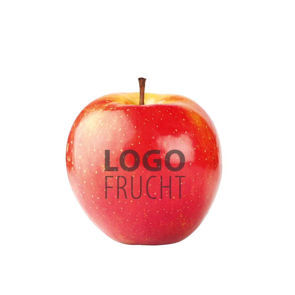 1 Qualitäts-Apfel rot, inkl. LOGOFrucht-Druck in Blackberry (VE 39 Stück in Apfel-Steige) • Vitamine für Ihr Unternehmen! Der Apfel wird mit einem schonenden Druckverfahren und hochwertigen Lebensmittelfarbstoffen individualisiert. Im Gegensatz zur Lasergravur wird die Schale des Apfels nicht beschädigt, denn der LOGO-Frucht-Druck hat keinen Einfluss auf die Lagerfähigkeit oder Frische des Apfels. Optional kann zusätzlich auch die Rückseite des Apfels bedruckt werden. (Im Preis enthalten ist bereits der individuelle LogoFrucht-Druck auf dem Apfel, pro Motiv werden einmalig Vorkosten berechnet.)