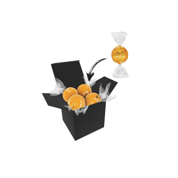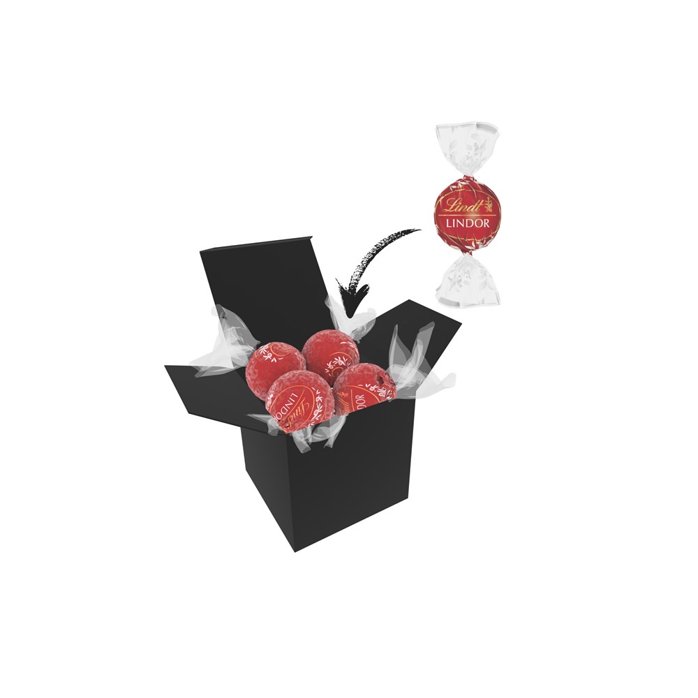 1 ColorBox (Farbe nach Wahl) gefüllt mit 4 Lindt Lindor Kugeln (Sorte nach Wahl) je 12,5 g. • Quadratisch, flexibel und nachhaltig: die ColorBox ist ein Naturprodukt "MADE IN GERMANY" welches aus 100% Recyclingpapier hergestellt wird und in 13 leuchtenden Farben erhältlich ist. Die ColorBox kann auf Wunsch mit einem 4c Aufkleber oder 1c Druck individualisiert werden, weitere mögliche Werbeanbringungen sind eine Banderole 4c um die Box herum und ab 3000 Stück ein All-Over Druck 4c.
