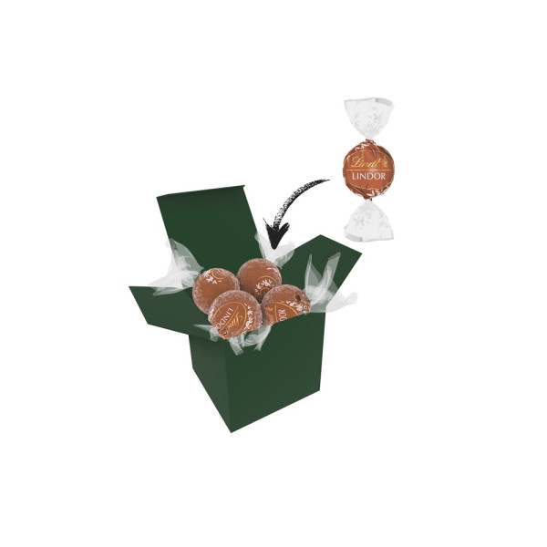 1 ColorBox (Farbe nach Wahl) gefüllt mit 4 Lindt Lindor Kugeln (Sorte nach Wahl) je 12,5 g. • Quadratisch, flexibel und nachhaltig: die ColorBox ist ein Naturprodukt "MADE IN GERMANY" welches aus 100% Recyclingpapier hergestellt wird und in 13 leuchtenden Farben erhältlich ist. Die ColorBox kann auf Wunsch mit einem 4c Aufkleber oder 1c Druck individualisiert werden, weitere mögliche Werbeanbringungen sind eine Banderole 4c um die Box herum und ab 3000 Stück ein All-Over Druck 4c.