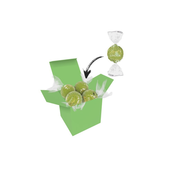 1 ColorBox (Farbe nach Wahl) gefüllt mit 4 Lindt Lindor Kugeln (Sorte nach Wahl) je 12,5 g. • Quadratisch, flexibel und nachhaltig: die ColorBox ist ein Naturprodukt "MADE IN GERMANY" welches aus 100% Recyclingpapier hergestellt wird und in 13 leuchtenden Farben erhältlich ist. Die ColorBox kann auf Wunsch mit einem 4c Aufkleber oder 1c Druck individualisiert werden, weitere mögliche Werbeanbringungen sind eine Banderole 4c um die Box herum und ab 3000 Stück ein All-Over Druck 4c.