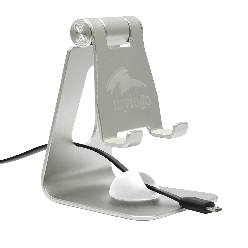 Smartphone Ständer aus Aluminium. mehrfach verstellbarer Neigungswinkel mit Kabelbremse.