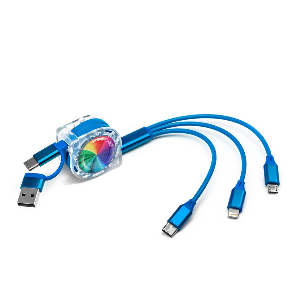Ladekabel mit Spule ca. 100 cm lang mit hochwertigen Alu USB-A + Type C auf iPhone Lightning, Micro USB und Type-C Anschlüsssen