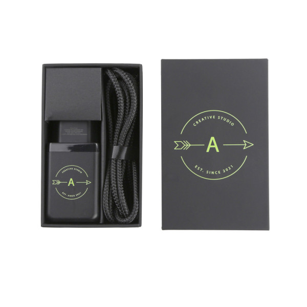 Das passende schwarze 2 Meter High Speed Ladekabel rundet das Set perfekt ab.