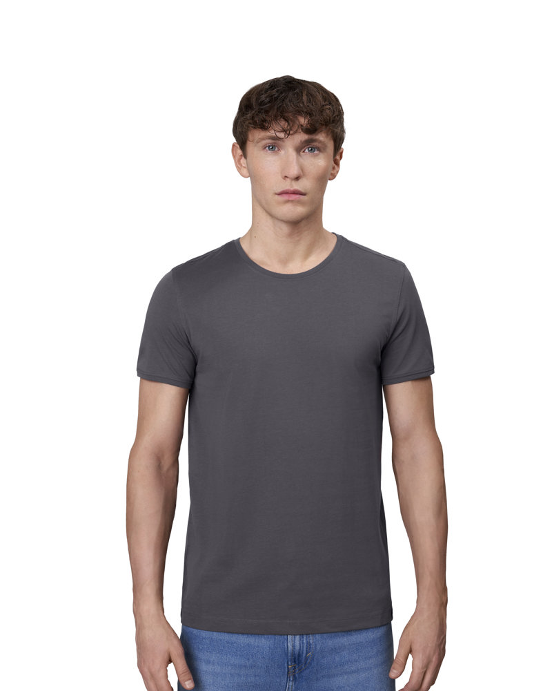 EU Ecolabel-zertifiziertes, casual, strapazierfähiges T-Shirt mit O-Ausschnitt, schmalem Ripp am Hals und an den Ärmeln sowie zusätzlicher Verstärkung von Nacken und Schulternähten. Casual Design und schöner Fit ohne Abstriche bei der Beweglichkeit zu machen. Das T-Shirt wurde aus verantwortungsvoll produzierter Baumwolle und recycled Polyester hergestellt und hat einen Einlaufprozess bei sehr hohen Temperaturen sowohl vor als auch nach dem Färben durchgelaufen, um zusätzliche Stabilität und lange Lebensdauer zu gewährleisten.