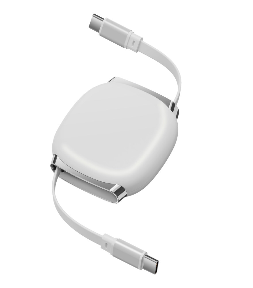 Kompaktes Ladekabel mit Spule und magnetischen Kontakthaltern ca. 100 cm lang mit hochwertigen Alu USB-C auf USB C Anschluss