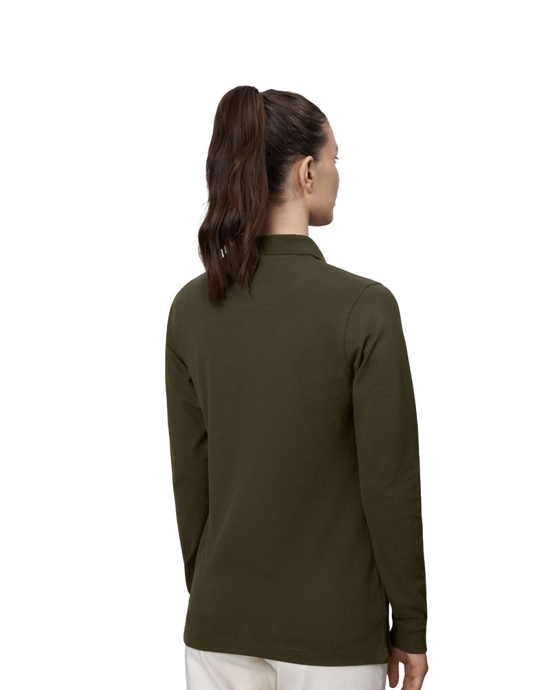 Zeitloses Polohemd in Piqué-Qualität mit Stretch. Lange Ärmel mit elastischem Rippbündchen. Nackenspiegel und Nackenband auf der Innenseite. Farblich abgestimmter Knopfverschluss.