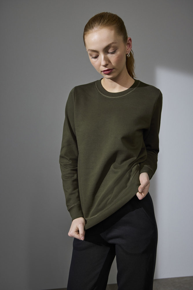 Bio-Sweatshirt aus weichem Baumwollgewebe mit schöner angerauter Innenseite. Rippabschluss an Hals, Ärmel und Bund und schöne Flatlocknähte. Das Sweatshirt besteht aus nach strengsten Bio-Standards von der Rohbaumwolle bis zum fertigen Produkt unter Berücksichtigung höchster Umweltanforderungen zertifizierter Bio-Baumwolle. Das Sweatshirt hat kein Nackenlabel, so dass ein eigenes Logo angebracht werden kann.
