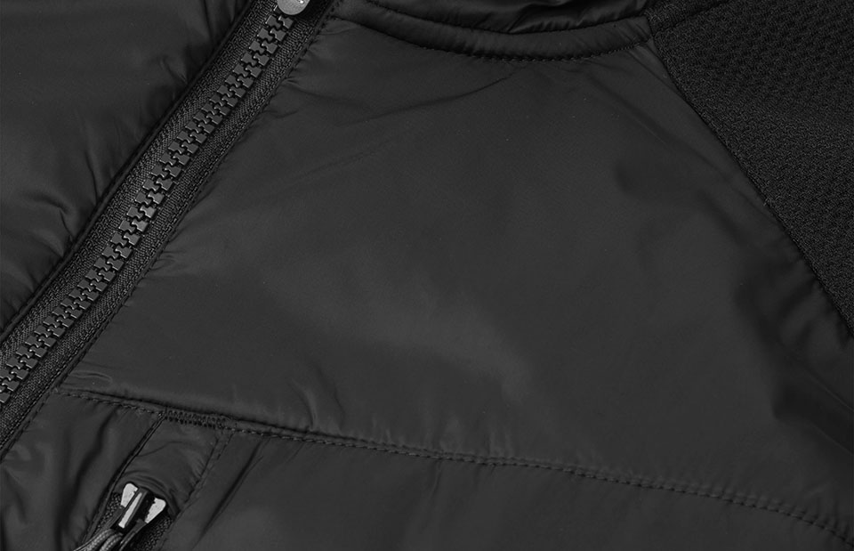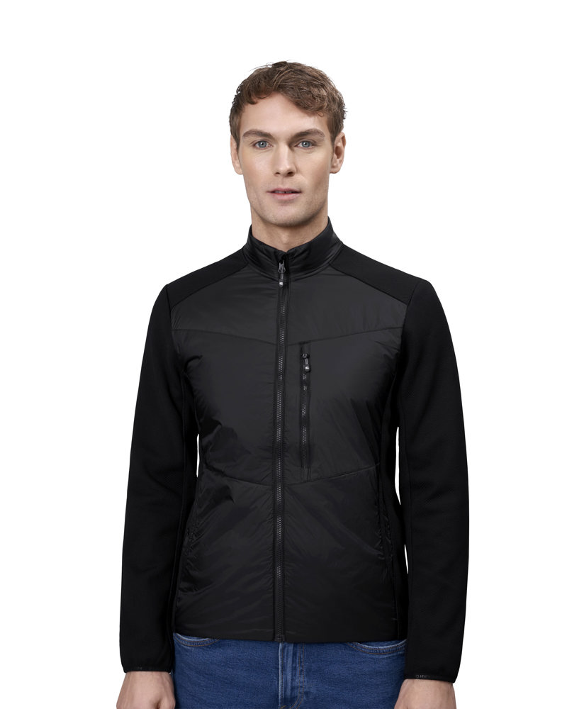 Exklusive, bequeme Hybridjacke mit leichter Wattierung. Die Wattierung besteht aus THERMOLITE® T-DOWN, hergestellt aus recycelten PET-Materialien. Ärmel und Passe sind aus einer herrlich weichen und dehnbaren Fleece-Qualität mit Bienenwaben-Muster gearbeitet. Tolle matte Reißverschlüsse von YKK. Taschen und Ärmel sind mit einer weichen elastischen Borte eingefasst. Tasche auf der Innenseite.
