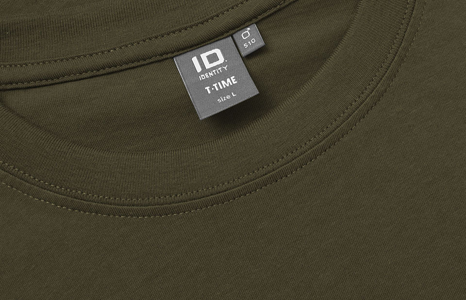 Klassisches T-Shirt mit vierfachem Rippabschluss am Hals und Nacken- und Schulterband. Hält die Passform auch nach sehr häufigem Waschen.