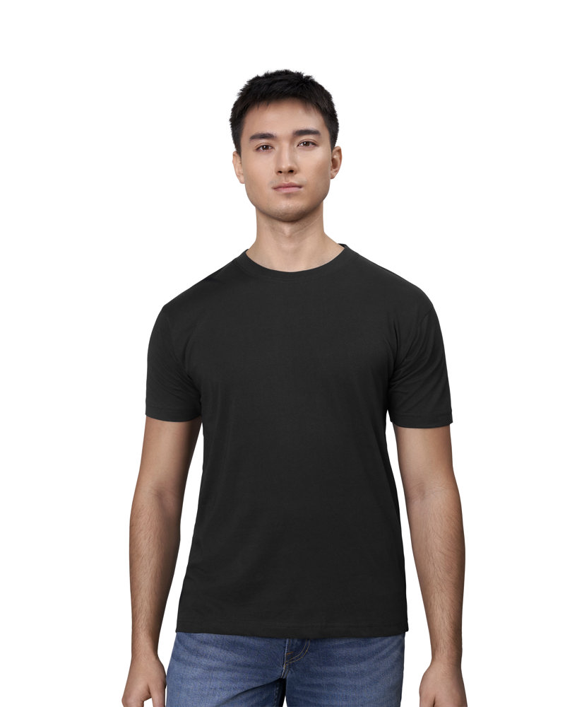 Klassisches T-Shirt mit vierfachem Rippabschluss am Hals und Nacken- und Schulterband. Hält die Passform auch nach sehr häufigem Waschen.