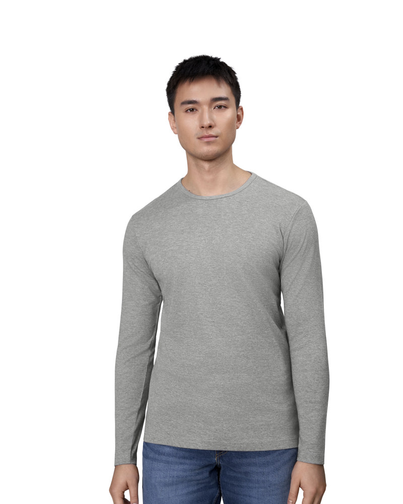 Langärmliges Interlock T-Shirt in weiche Antipilling-Qualität. Schmal gerippter runder Halsausschnitt. Körpernahes Modell.