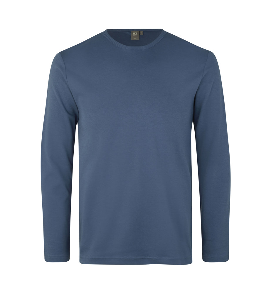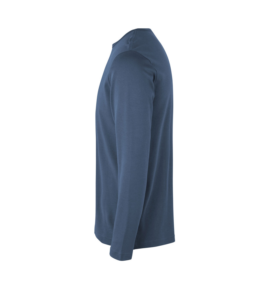 Langärmliges Interlock T-Shirt in weiche Antipilling-Qualität. Schmal gerippter runder Halsausschnitt. Körpernahes Modell.
