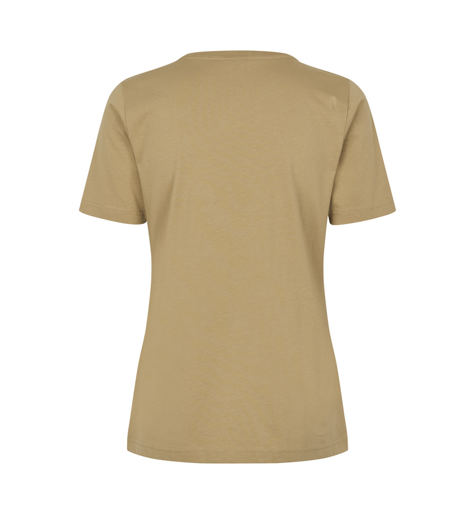 Klassisches T-Shirt mit femininem O-Ausschnitt, vierlagigem Halsbündchen sowie Nacken- und Schulterband. Behält seine Form nach jeder Wäsche.