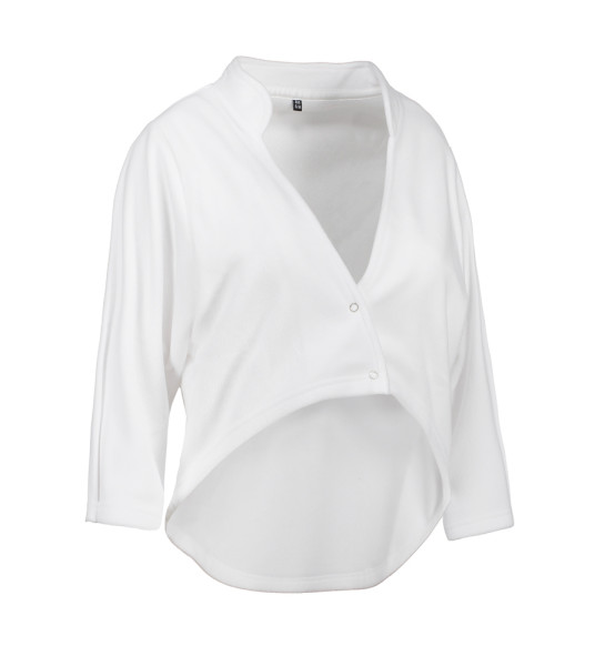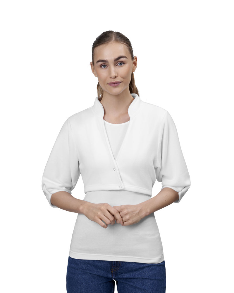 Weiche Fleece Bolerojacke / Seelenwärmer sehr Wäschereigeeignet. Aus engem Strick hergestellt in hochwertigen Polyesterfaser. Kann bis 60 Graden gewaschen werden. Sowohl innen als auch außen mit Antipilling-Behandlung. YKK Druckknöpfe. Verstellbares Ärmel Abschluss am Ellbogen.