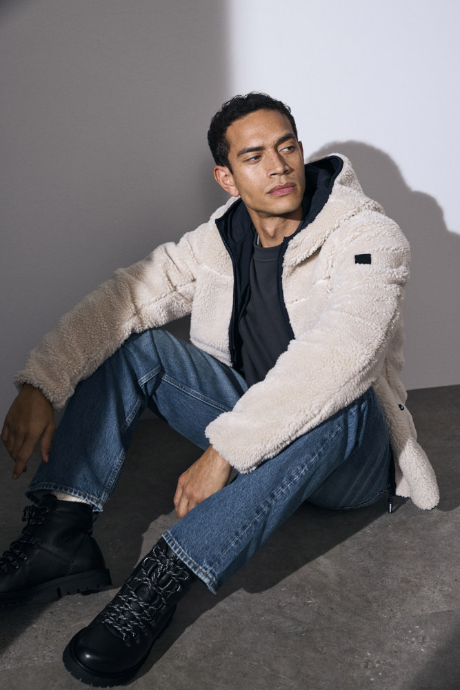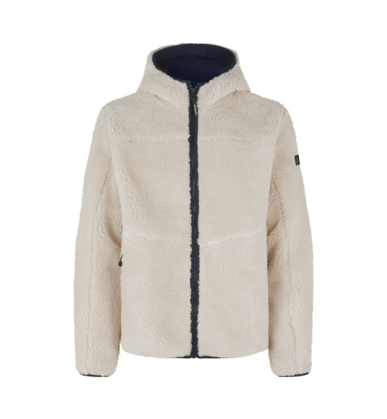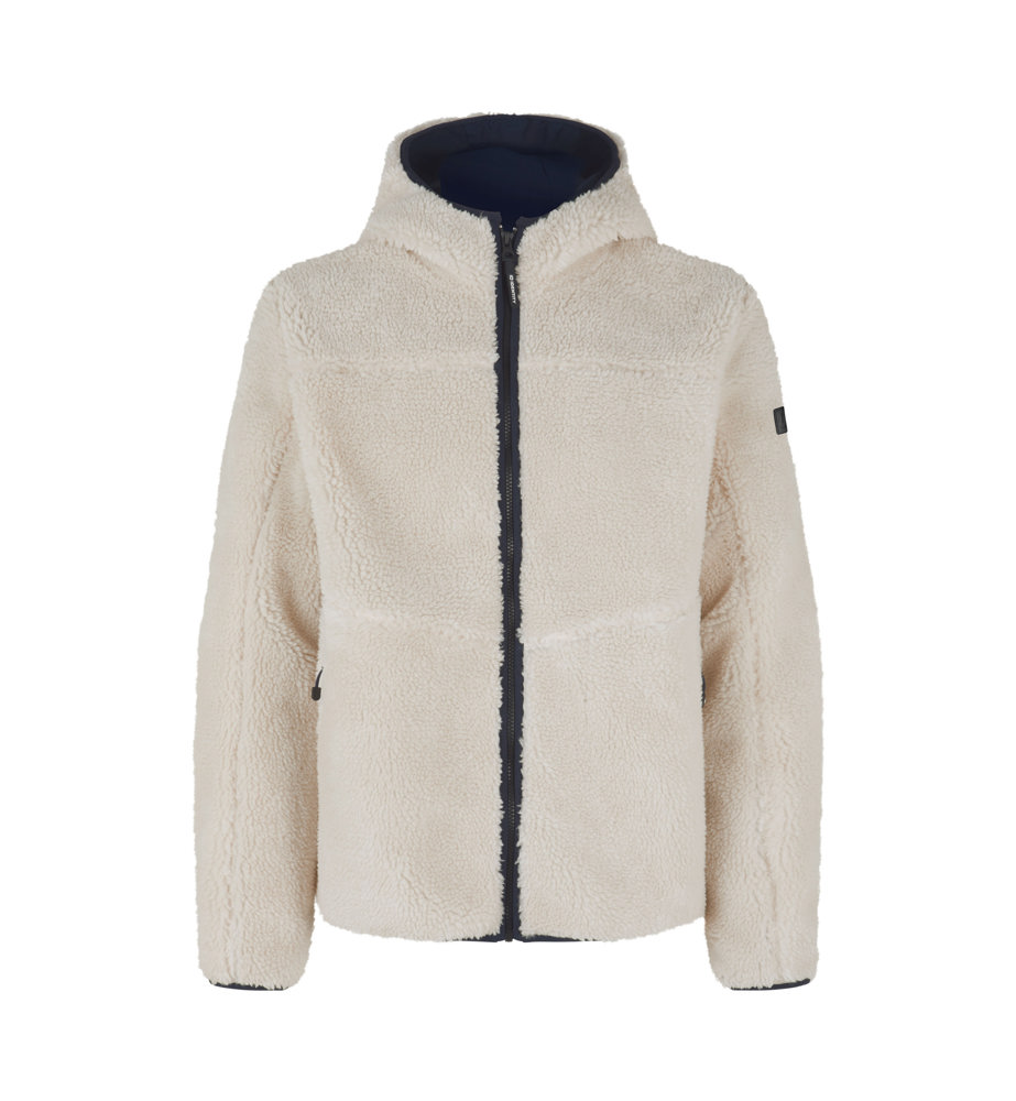 Weiche Teddyfleece-Jacke mit Kapuze und Innentaschen mit Reißverschluss. Besonders geeignet als Übergangsjacke im Frühjahr oder Herbst. Die Jacke hat eine Kontrastfarbe auf der Innenseite sowie an Ärmeln und Reißverschluss, was ihr einen modernen Touch verleiht.