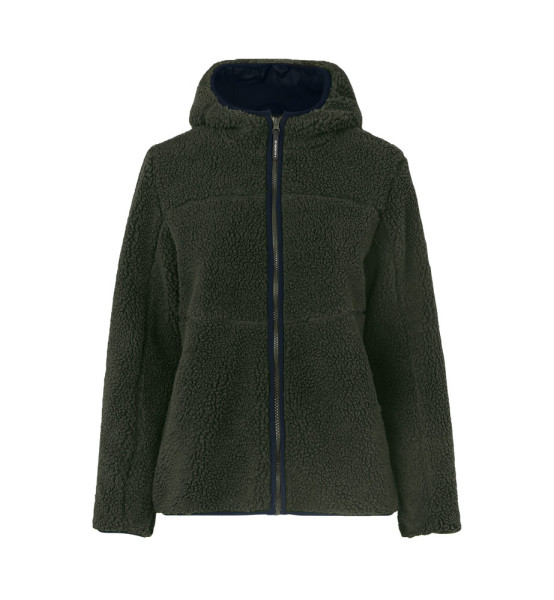Weiche Teddyfleece-Jacke mit Kapuze und Innentaschen mit Reißverschluss. Besonders geeignet als Übergangsjacke im Frühjahr oder Herbst. Die Jacke hat eine Kontrastfarbe auf der Innenseite sowie an Ärmeln und Reißverschluss, was ihr einen modernen Touch verleiht.
