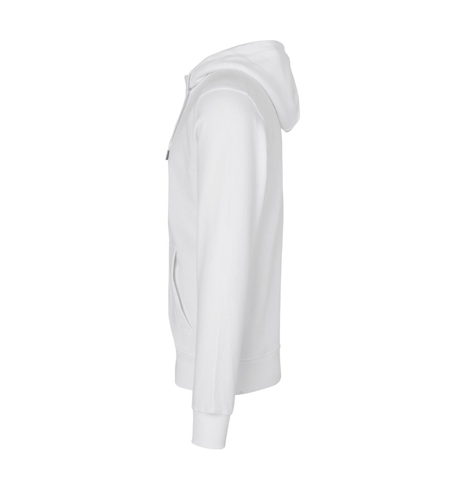 Klassische Kapuzenjacke mit Känguruhtasche in neuer und moderne Passform. High-cut Halsabschluss und durchgehender Reißverschluss. Kordel in der Kapuze und Rippabschluss an Ärmeln und Bund. Kräftige Qualität. Weiche, angeraute Innenseite.