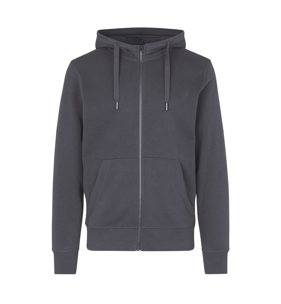 Klassische Kapuzenjacke mit Känguruhtasche in neuer und moderne Passform. High-cut Halsabschluss und durchgehender Reißverschluss. Kordel in der Kapuze und Rippabschluss an Ärmeln und Bund. Kräftige Qualität. Weiche, angeraute Innenseite.