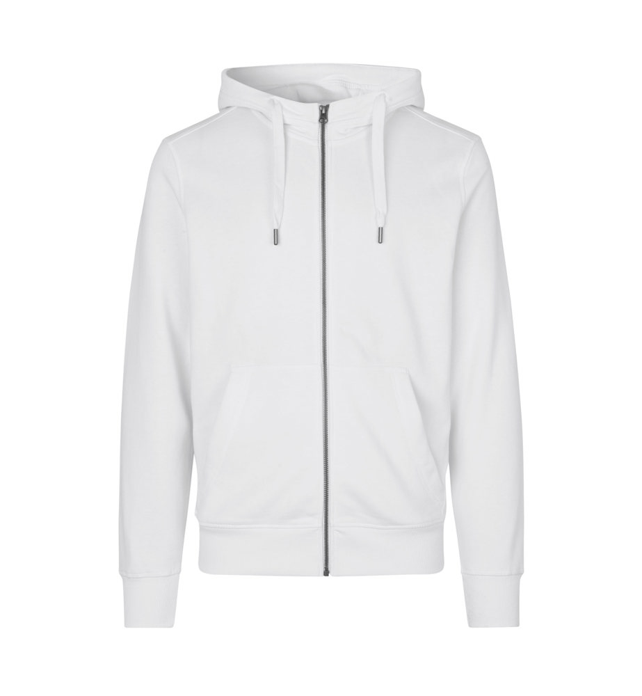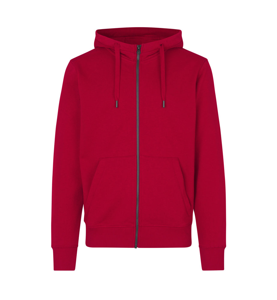 Klassische Kapuzenjacke mit Känguruhtasche in neuer und moderne Passform. High-cut Halsabschluss und durchgehender Reißverschluss. Kordel in der Kapuze und Rippabschluss an Ärmeln und Bund. Kräftige Qualität. Weiche, angeraute Innenseite.