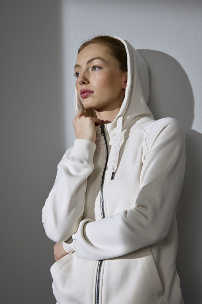 Klassische Kapuzenjacke mit Känguruhtasche in neuer und moderner Passform. High-cut Halsabschluss und durchgehender Reißverschluss. Kordel in der Kapuze und Rippabschluss an Ärmeln und Bund. Kräftige Qualität. Weiche, angeraute Innenseite. Leicht figurbetont.