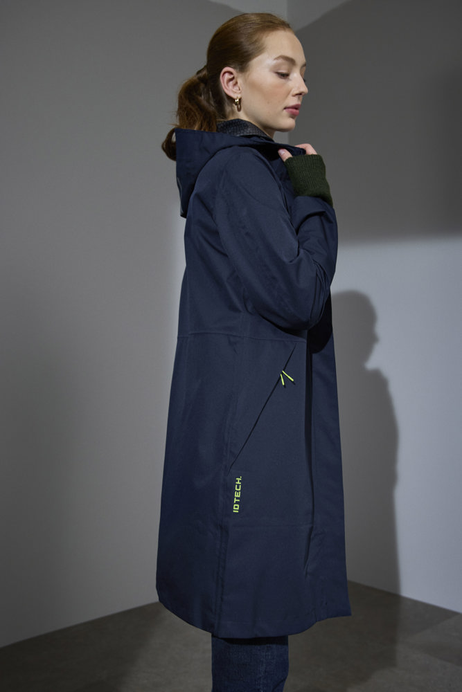 Exklusive und moderne ID® TECH-Regenjacke in Twill-Qualität mit Stretch. Die Jacke hat eine fluorfreie BIONIC-FINISH® ECO-Behandlung erhalten. Toller Print auf der Innenseite und versiegelte Nähte. YKK-Reißverschlüsse mit hübschen Kontrastdetails auf der Vorderseite und an den Taschen. Die Jacke hat einen Reißverschluss, der für maximale Wasserdichte mit verdeckten Druckknöpfen geschlossen wird. Die Kapuze hat einen Tunnelzug auf der Innenseite und einen leichten Schirm vorne. Ärmel mit verstellbarem Verschluss. Langes Modell