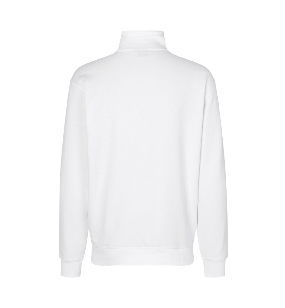 Jacke in kräftiger Qualität mit durchgehendem Reißverschluss und zwei Schubtaschen. Nackenband, Ripp an Ärmel und Bund und schicke Flatlocksteppnähte. Weiche, angeraute Innenseite.