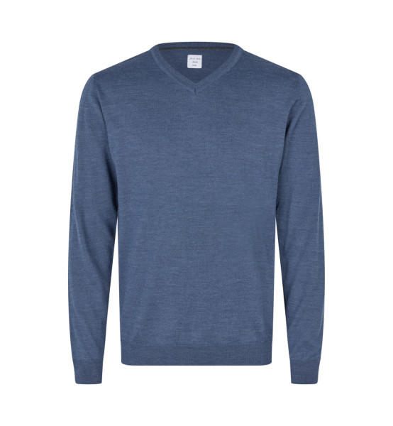 Pullover mit v-Ausschnitt aus weicher, mulesingfreier Merinowolle. Schicke Details an Hals und Schultern verleihen ein klassisches und zeitloses Design. Perfekt fi.ir sowohl Arbeit als auch Freizeit. Maschinenwaschbar im Wollprogramm - nach dem Waschen leicht in Form ziehen.