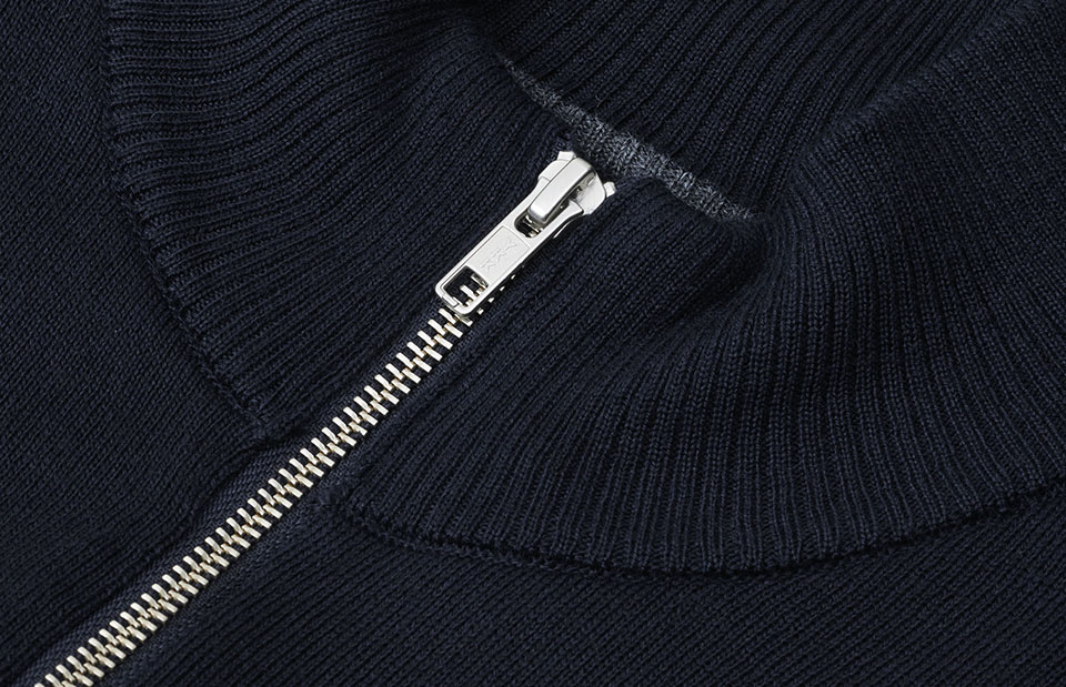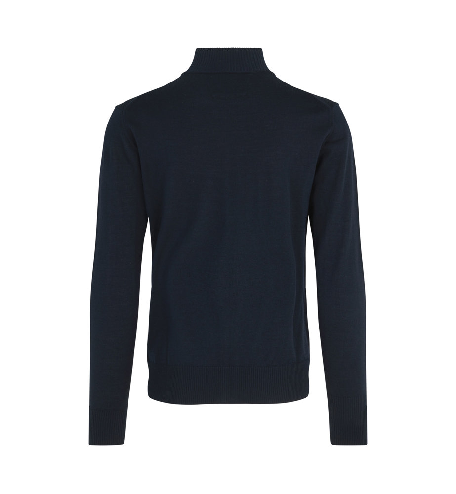 Elegante Strickjacke mit Reißverschluss und hohem Kragen aus weicher, mulesingfreier Merinowolle. Schicke Details am Kragen und an den Schultern für einen klassischen und zeitlosen Look. Perfekt til Arbeit og Freizeit. Sollte im Wollprogramm der Waschmaschine gewaschen werden – nach dem Waschen leicht in Form ziehen